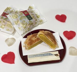 あっさりとした甘みのかぼちゃ餡をたっぷりのバターを使用したパイ生地で包んだ